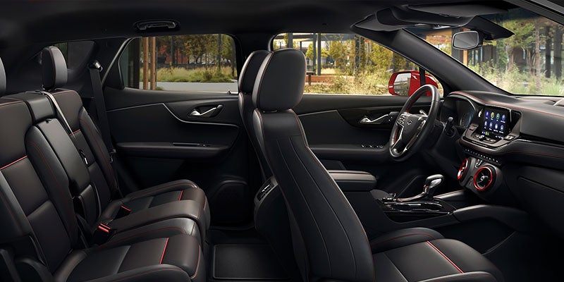 With style of this stature, every drive is a chance to show off. Outside, it features a striking stance and ultra-thin LED daytime running lamps that give an aggressive look. Inside, it’s got available leather-appointed seating and a touch of chrome. With three exterior personalities, there’s sure to be a Blazer to suit you.