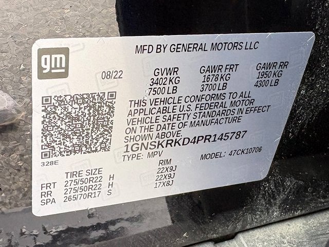 This terrific-looking 2023 Chevrolet Tahoe includes the following equipment and details: 2 SETS OF KEYS, Bluetooth®/HANDS FREE CELLPHONE, SUNROOF / MOONROOF, NAVIGATION, THIRD ROW SEATING, BACKUP CAMERA, HEATED SEATS, ALLOY WHEELS, and REMOTE STARTER Preferred Equipment Group 1SP (1st & 2nd Row Color-Keyed Carpeted Floor Mats, Auto-Dimming Inside Rear-View Mirror, Bose 9-Speaker Stereo Audio System Feature, Bright Front & Rear Door Sill Plates, Color-Keyed Carpeting Floor Covering, Driver & Front Outboard Passenger Airbags, Enhanced Driver Information Center, Floor Console w/Storage Area, Hands-Free Rear Power Programmable Liftgate, Infotainment Display, LED Daytime Running Lamps, Memory Settings for Driver, Remote Start, SiriusXM Radio w/360L, Universal Home Remote, Wireless Charging, and Wrapped Steering Wheel), 3rd row seats: split-bench, 9 Speakers, Air Conditioning, Alloy wheels, Apple CarPlay/Android Auto, Dual-Pane Power Panoramic Sunroof, Front dual zone A/C, Fully automatic headlights, Heated Driver & Front Passenger Seats, Low tire pressure warning, Navigation System, Power Liftgate, Remote keyless entry, and Security system.
